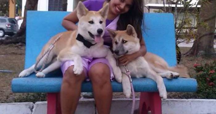 Desde pequena, ela aprendeu com sua mãe a gostar de animais, por isso hoje tem 3 cães e uma gata. São eles Kira e Hachiko ,da raça Akita, Azumy que é SRD (Sem Raça Definida) e a gatinha Princesa. Kristina nos fala que ama passear com seus animais: “De manhã é o Rômulo, meu noivo, e a noite sou eu. Gosto de levar eles na praça pra brincar”. Pra encerrar a entrevista, Kristina falou ao Canil Garra “Que eu amo muito meus filhos e que eles fazem parte da minha família”.