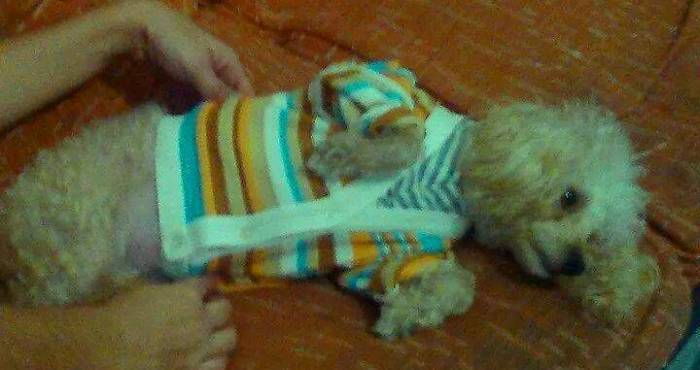Galera,esta é a Juju. Uma pequena poodle, que está quase nos dias de dar a luz, e quem está feliz demais é a Kelly Lourenço, sua dona, ou melhor, como ela mesma diz: "sua mamãe"