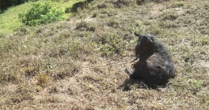 Na manhã deste dia 1º, voltando da cidade de Santa Maria de Itabira, deparamos com esta cena de extrema covardia e de prática de crime de maus tratos. Um bode amarrado, debaixo de um sol forte, sem água e sombra. Até tinha água naquele local, porém há, cerca de, uns 100 metros do animal que, estava amarrado.