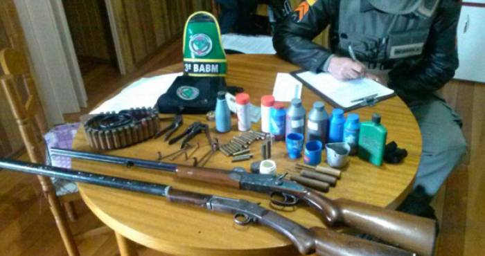Um homem de 59 anos foi preso por volta das 8h desta segunda-feira (30) em Caxias por crime ambiental e porte ilegal de arma. A prisão ocorreu no interior de Galópolis, após denúncia na Patrulha Ambiental (Patram) e mandado de busca e apreensão expedido pela Justiça. Com ele, foram encontradas 23 carcaças de aves silvestres, uma espingarda calibre 36, uma espingarda calibre 40, um silenciador, 40 cartuchos, sete potes de pólvora, dois frascos de chumbo e uma caixa de espoleta. Uma das armas tinha o registro vencido e a outra não tinha o documento.